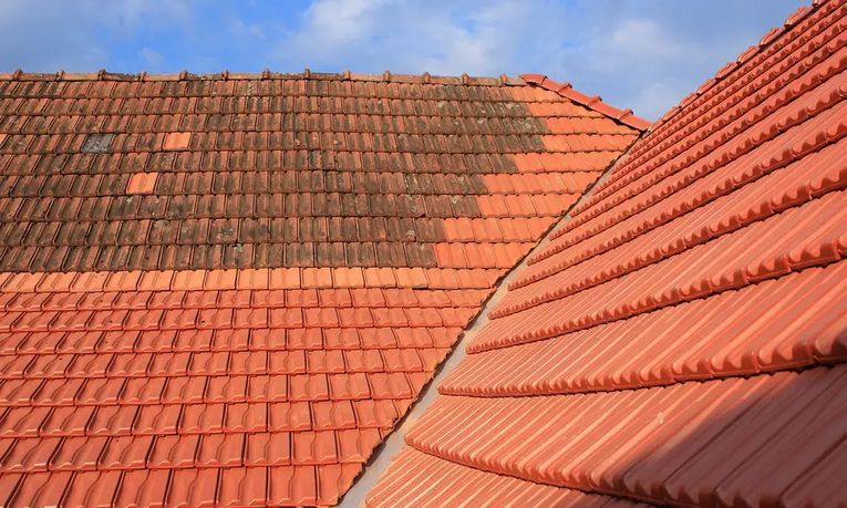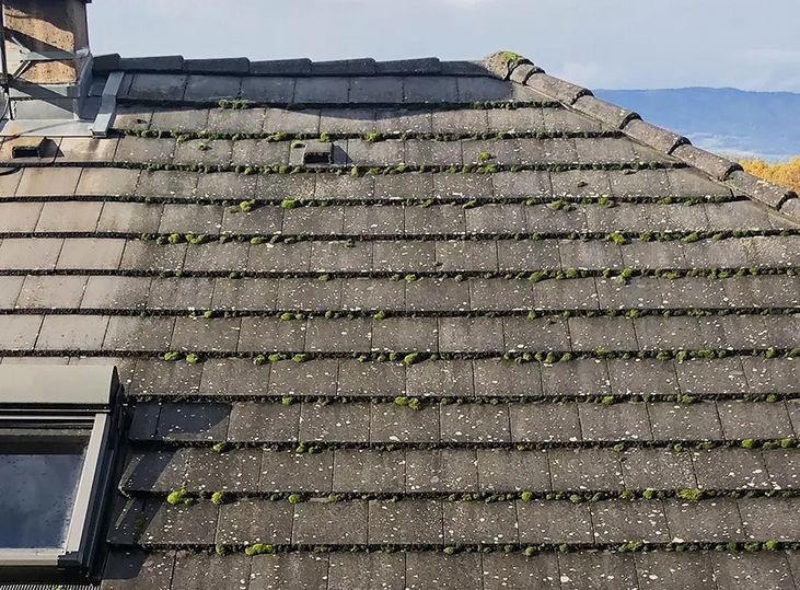 - Nettoyage en profondeur de la surface de votre toit pour éliminer mousse, lichen et autres résidus